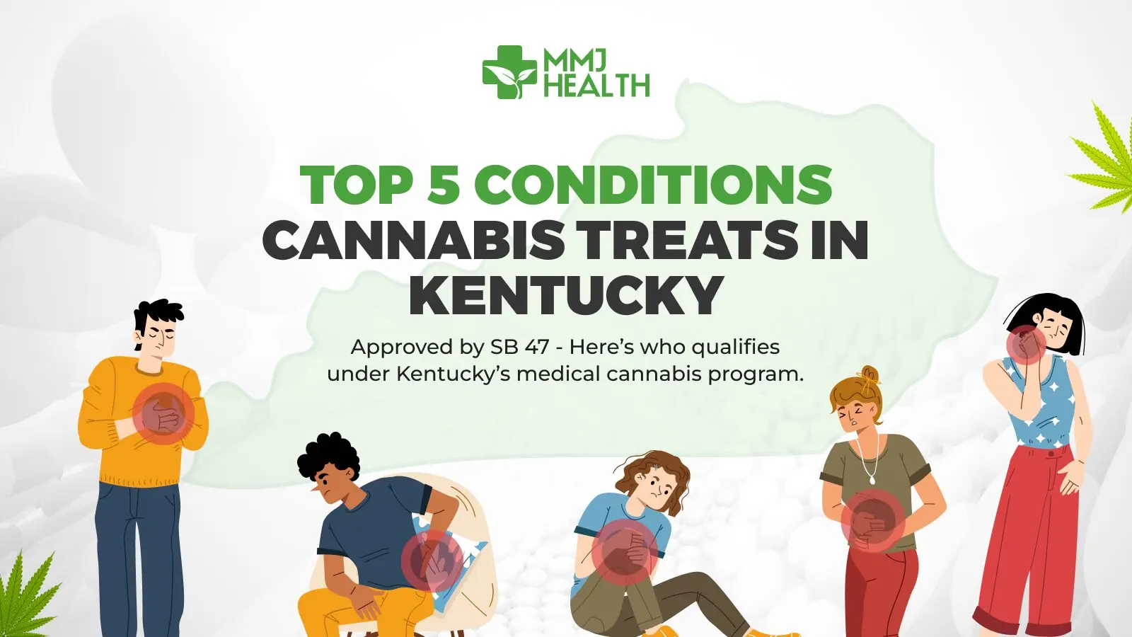The program doesn’t cover every medical issue. To join, you need a qualifying condition, a doctor’s written certification, and a valid state-issued cannabis card. In this guide, we’ll highlight the top 5 conditions most commonly approved under Kentucky’s MMJ program and explain how cannabis can help. We’ll also walk you through the state’s application process—and show why MMJ Health is the state’s trusted choice for fast, compassionate certifications.